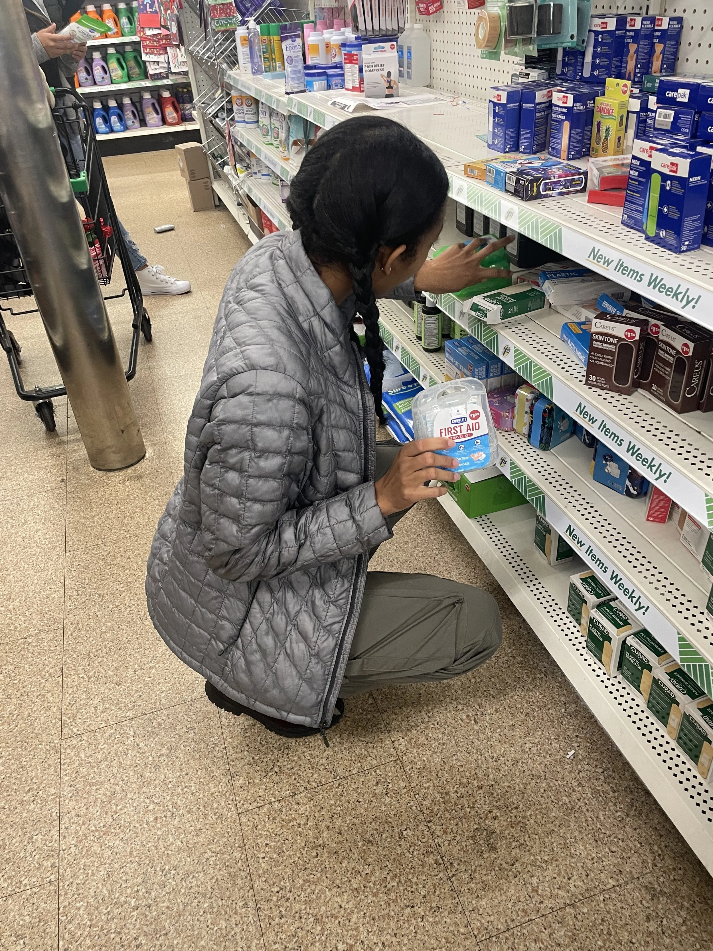 Pictured is Jayla shopping for supplies to fill the blessing bags created for 2024 Christmas